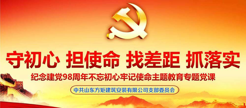 進入6月份以來,山東方矩建筑安裝有限公司支部委員會緊緊圍繞開展“不忘初心、牢記使命”主題教育工作部署,聚焦主題教育活動主題,緊密結(jié)合工作實際,把握學(xué)習(xí)要點和工作重點,公司制定了《關(guān)于開展慶祝建黨98周年系列主題活動實施意見》和《關(guān)于深入開展2019年度公司第22個安全月活動實施方案》,舉辦了建筑業(yè)增值稅應(yīng)用專家授課講座,積極組織開展學(xué)習(xí)貫徹落實《中國共產(chǎn)黨黨員教育管理工作條例》主題黨日活動,充分發(fā)揮公司基層黨組織“濟寧市六好非公有制經(jīng)濟組織和社會組織黨建工作示范點”的作用,切實做到主題教育內(nèi)化于心、外化于行。