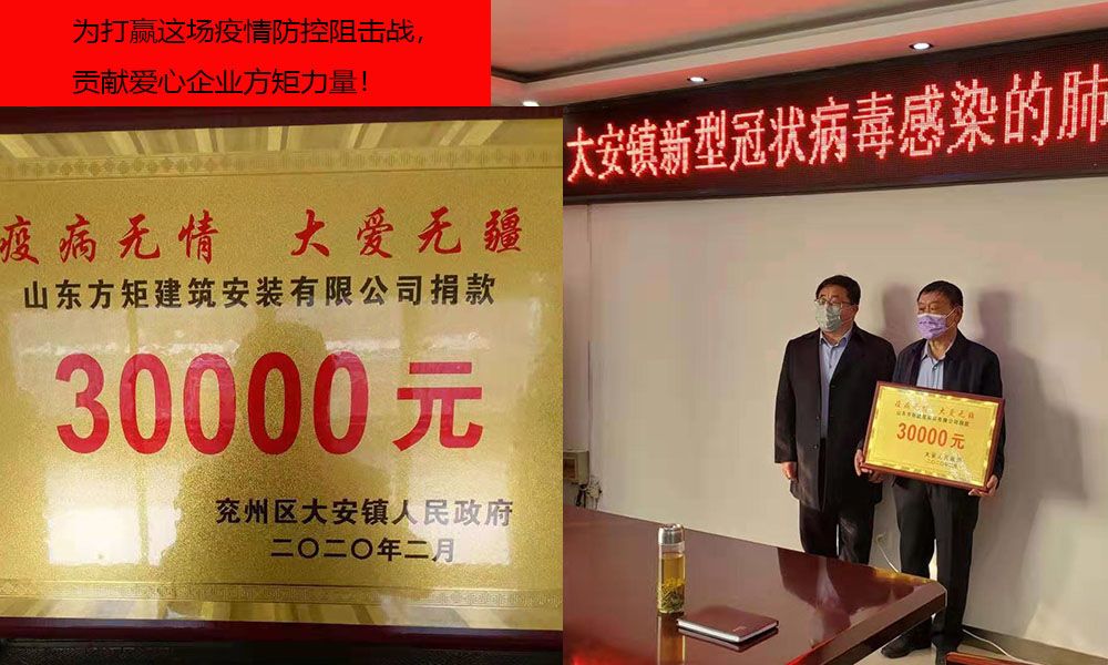 生命重于泰山,疫情就是命令,防控就是責任,山東方矩建筑安裝有限公司愛心捐贈30000元,助力打贏阻擊戰(zhàn)!