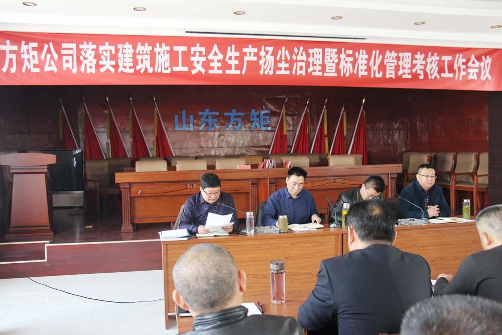 2017年3月10日,方矩公司組織召開(kāi)了建筑施工安全生產(chǎn)揚(yáng)塵治理暨標(biāo)準(zhǔn)化管理考核工作會(huì)議。公司相關(guān)部室負(fù)責(zé)人、各在建工程項(xiàng)目經(jīng)理或施工負(fù)責(zé)人、安全員、質(zhì)檢員、施工員、資料員等崗位人員60余人參加了會(huì)議。